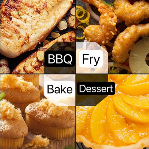 • Frying basket and pan safe for dishwashers and non-stick coated