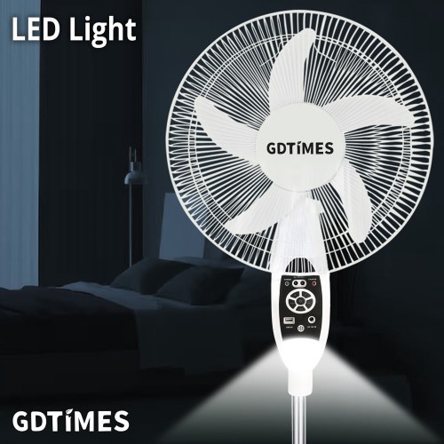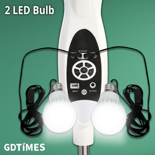 GDTimes 16" 6V Rechargeable Fan With Solar Panel 10W & 2 Bulbs GD-936