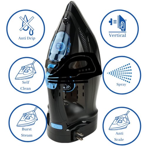 Features:Dry ironingPowerful sprayerVertical steamVariable steamIroning up to 60 g/minBurst of steam..