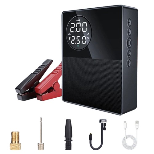 Multifunction use, including car battery charger, Jump starter, Air compressor, Lighting, SOS for emergency, Portable power bank