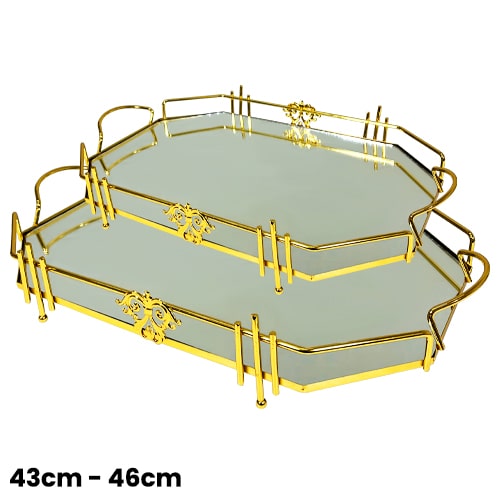 MDA Homes Gold Serving Tray With Mirror Base 2pcs 43,46cm 0067