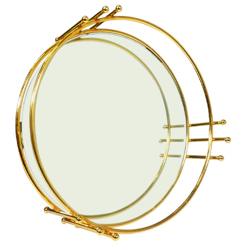 Features:golden color, mirrored tray made of rectangular metal materialDoes not tarnish or rustA sty..