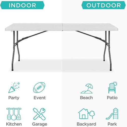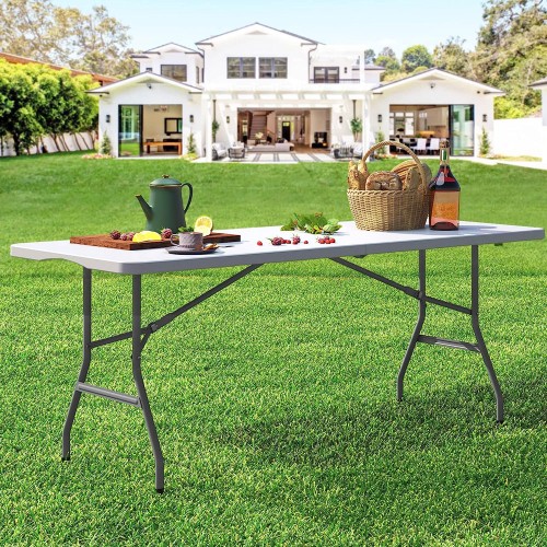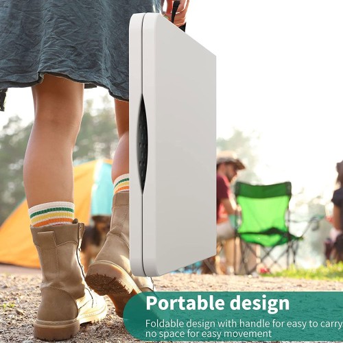 Once you're done, simply fold the table away, For easy storage it reduces to half its original size, It can be comfortably carried using its practical carry handle for convenient transportation.