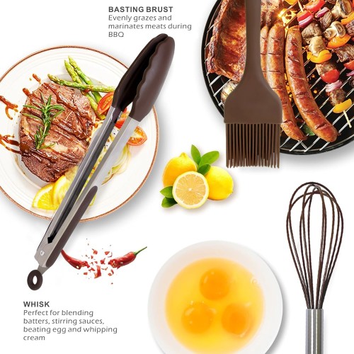 Features:12Pcs Silicone & Metal kitchen set No damage for your non-stick cookware or your e..