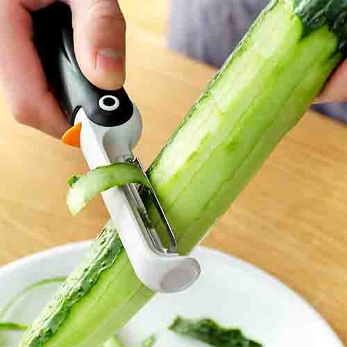 Easily peel precise strips of potato, carrots, cucumber, zucchini and more