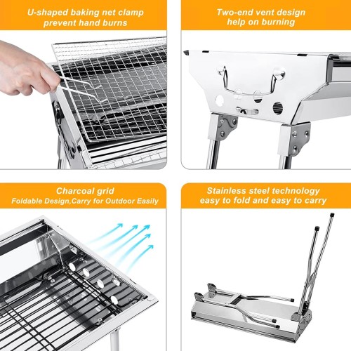 Portable Stainless Steel Charcoal BBQ Grill 73*34*69cm