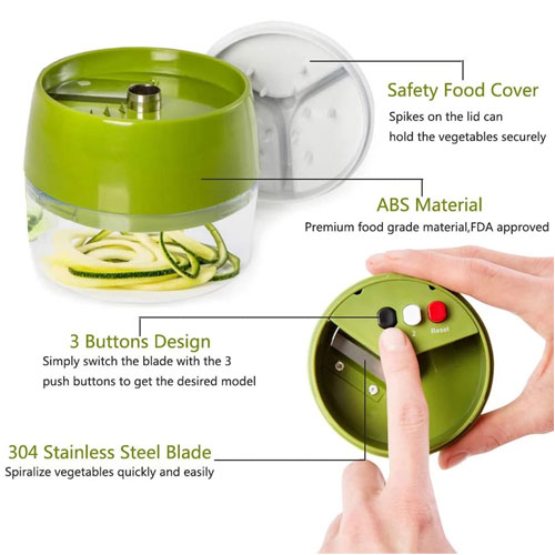 Whilst holding the body of the spiral slicer firmly onto the worktop, use the finger guard to push the vegetable into the slicer whilst turning it clockwise past the blades