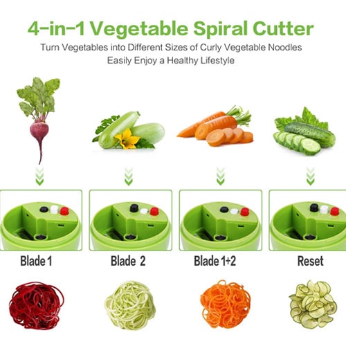 Straight and firm vegetables around 30-50mm in diameter, such as beetroot, potatoes and carrots, work best in the spiral slicer, but you may wish to experiment