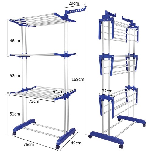 4 Tiers Foldable Clothes Drying Rack 169(H)*76(W)*49(L)