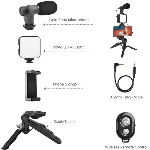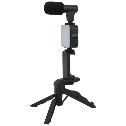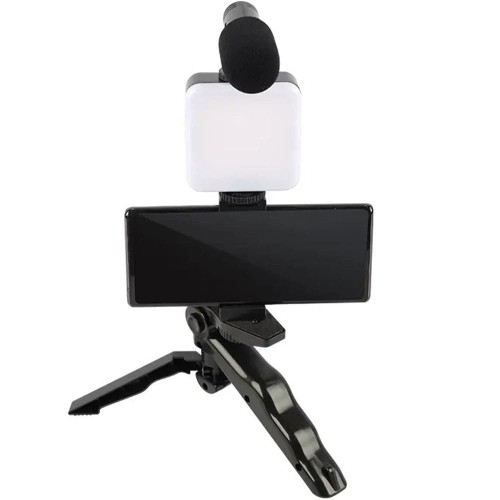 Vlogging & YouTube Video Making Accessories Kit, Tripod Stand, Phone Mount Clip, LED Light & Microphone