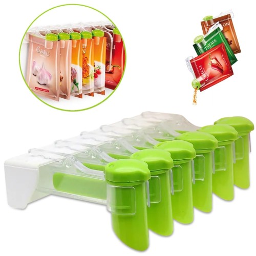 Wall-Mounted Spice Bag Holder with 6 Clips