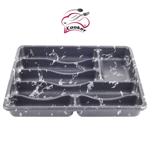 Features:6 SECTIONS BLACK MARBLE PATTERNED SPOON RACKMaterial: Plastic More organization in you..