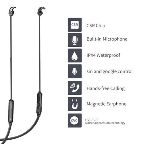 - Bluetooth wireless magnetic headset (Bluetooth V 5.0 chip)