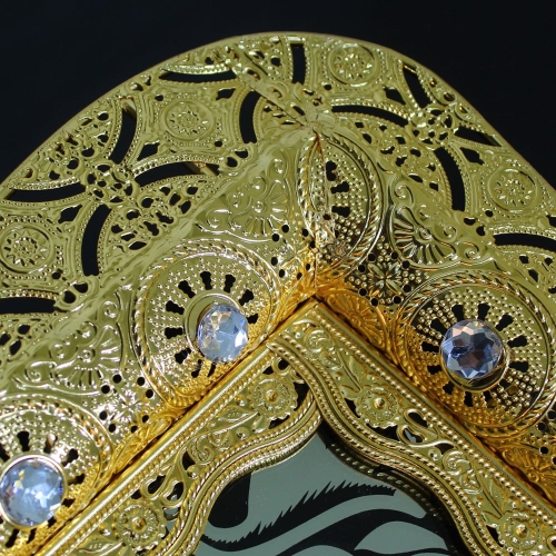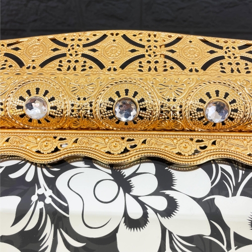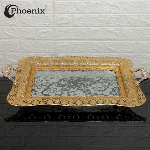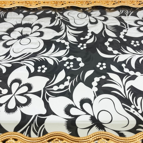 Phoenix Luxury Rectangular Gold Serving Tray With Printed Glass Base 52*37*5 cm