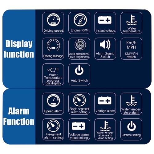 - Rich data display: driving speed / RPM/ tank temperature / battery voltage / mileage / automatic power on off