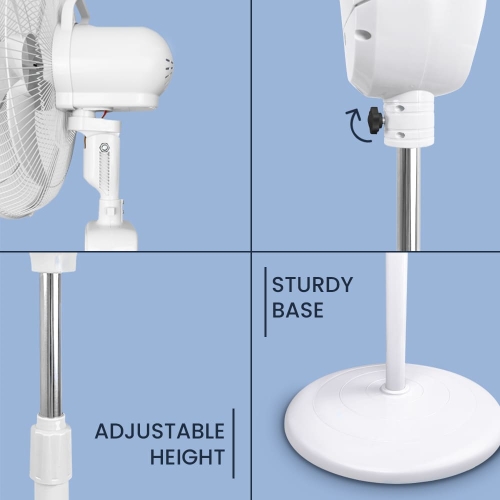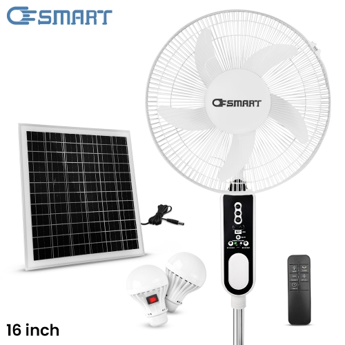 OSmart 16" 11AH Rechargeable Stand Fan With Solar Panel 10W & 2 Bulbs OS10105