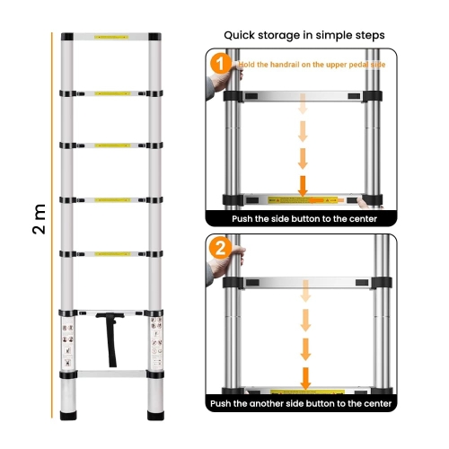2m Multi-uses Extendable Aluminum Straight Ladder 5.2kg 7 Steps