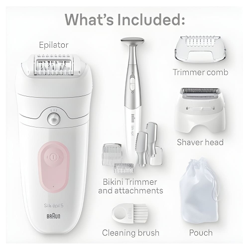 BRAUN Silk-Epil5 SE5230 Rechargeable Wet & Dry Epilator Hair Remover With 9 Extras