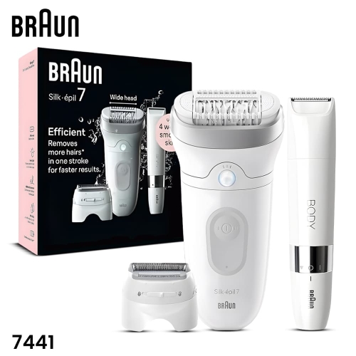 BRAUN Silk-Epil7 SE7441 Rechargeable Epilator Hair Remover With 6 Extras