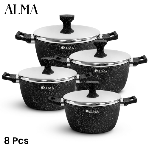 ALMA 8Pcs Marble Induction Forged Granite Cookware Set