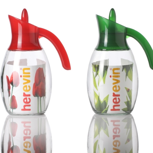 Glass Jug, Decorated Glass Jug, Glass Pitcher With Plastic Lid Handle